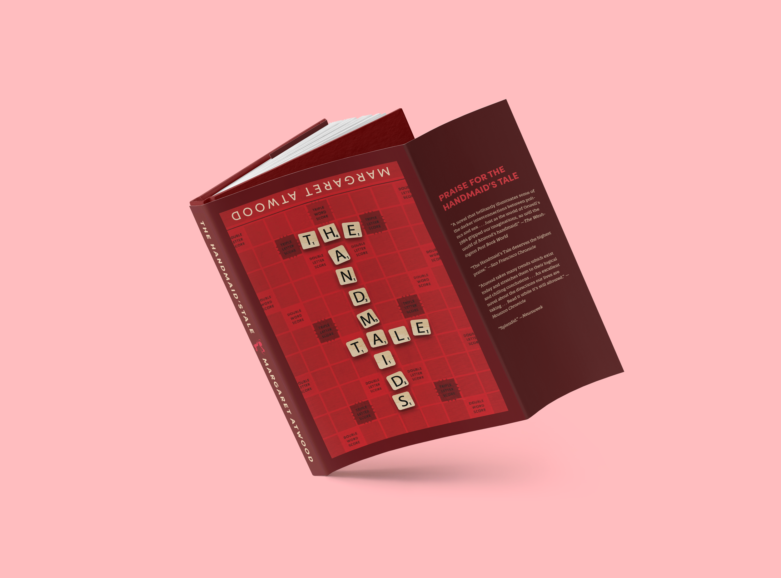 For this project, I was prompted to redesign the cover of a classic novel with a focus on type design. I chose the Handmaid’s Tale and was eager to explore typography within a book that centered around the censorship of the written word. My design was inspired by the games of Scrabble played between Offred and the Commander, a symbol of rebellion and the power of language throughout the novel.